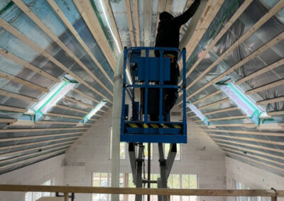För att möta dessa krav involverades vi på Isolerservice redan i projekteringsfasen. Genom att ta ett helhetsgrepp från start kunde vi presentera en modern konstruktionslösning som eliminerade flera tidskrävande arbetsmoment för snickarna och optimerade hela byggflödet.