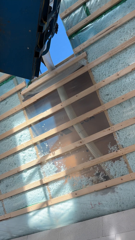 Skarvfritt resultat: Till skillnad från traditionella skivor blåses lösullen in under tryck och fyller ut minsta skrymsle. Det skapar ett heltäckande “täcke” som eliminerar köldbryggor.