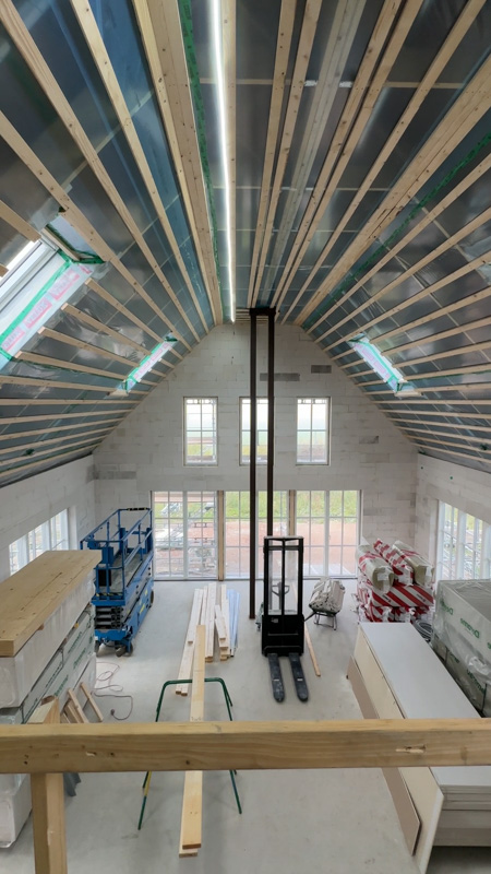 Vid nybyggnationen av detta premiumhus stod byggaren inför en tydlig utmaning: att förenkla byggprocessen och spara tid, utan att tumma på de rigorösa kraven för energieffektivitet, brand- och fuktsäkerhet. Arbetsplatsen var dessutom väldigt trång. För att undvika snubbelolyckor och onödiga avbrott fanns en stark önskan om att helt slippa lagra byggmaterial på tomten.